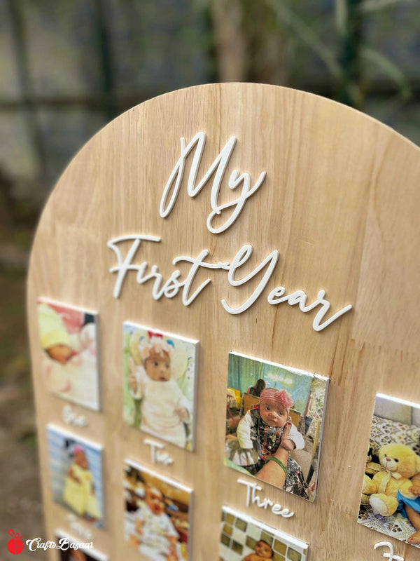 Unlike others, this memory arch combines personalization, twelve clear photo slots, and a neutral wood finish for everyday display, making milestones easy to share and gift-ready.